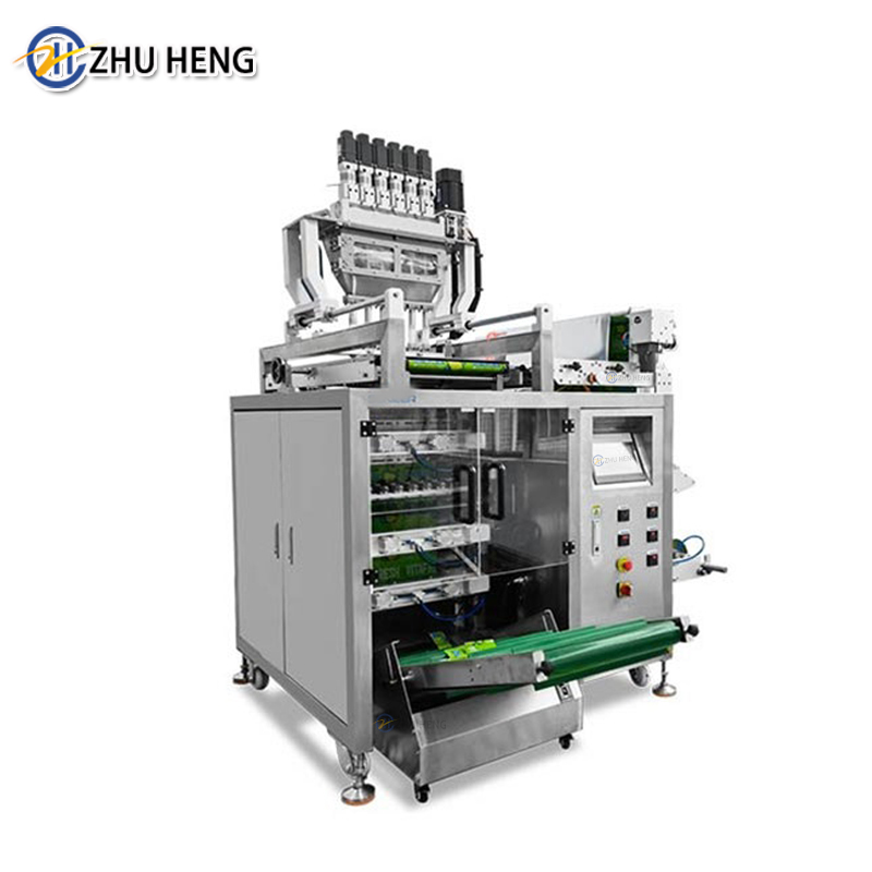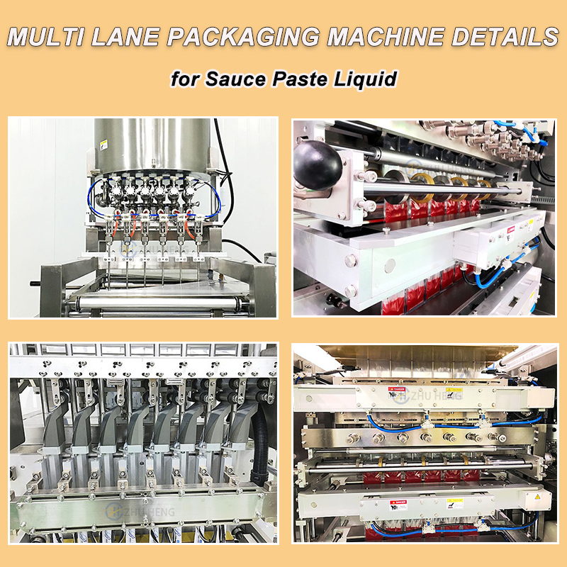 The Multi Lane High-Efficiency Packaging Machine is an automated system designed to weigh and pack a variety of products quickly and accurately.Multiple lanes simultaneously measure and dispense sauces into small packages, greatly improving packaging efficiency and accuracy in industries such as food, pharmaceuticals and cosmetics.